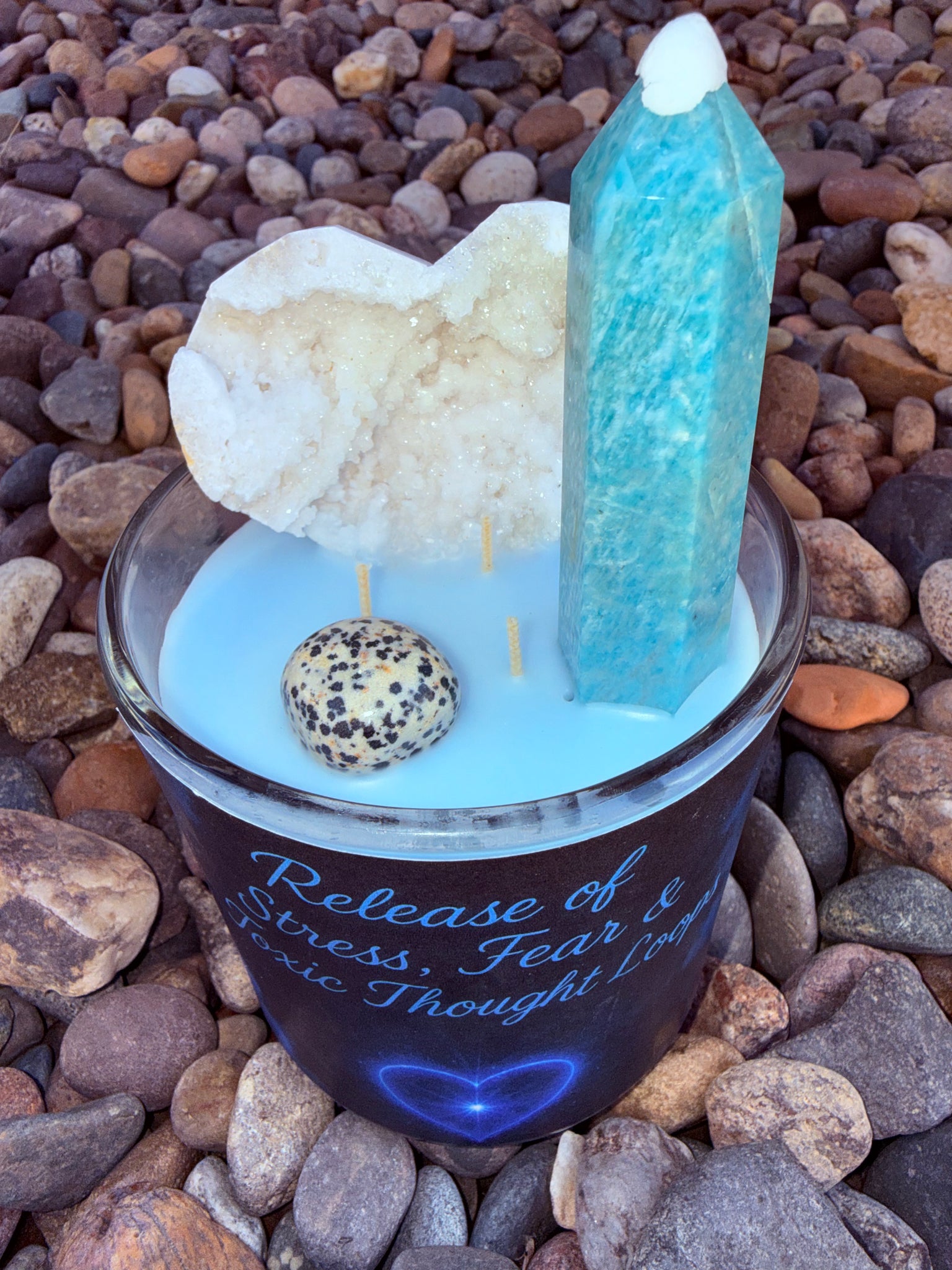 Release of Stress, Fear, & Toxic Thought Loops Crystal Candle Reiki Blessed by Queen Under The New Moon In Sagittarius