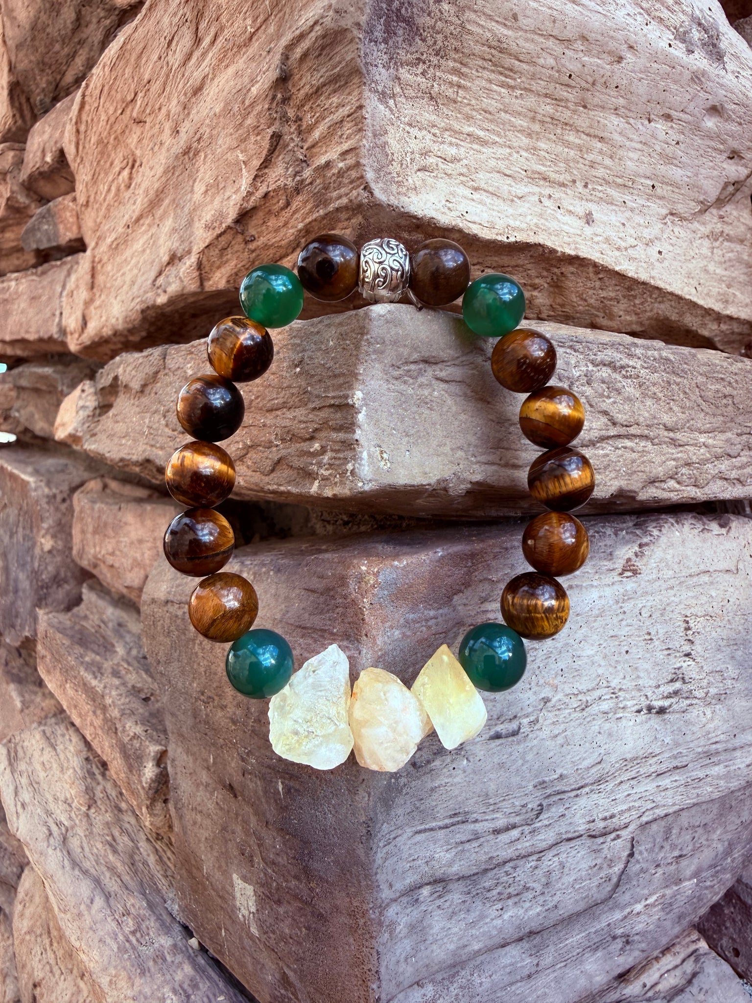 The Abundance Magnet Bracelet is a sacred synergy of Citrine, Tiger’s Eye, and Green Aventurine. Three high-frequency stones that realign your energy field from scarcity to expansion, from fear to faith, and from striving to effortless flow.