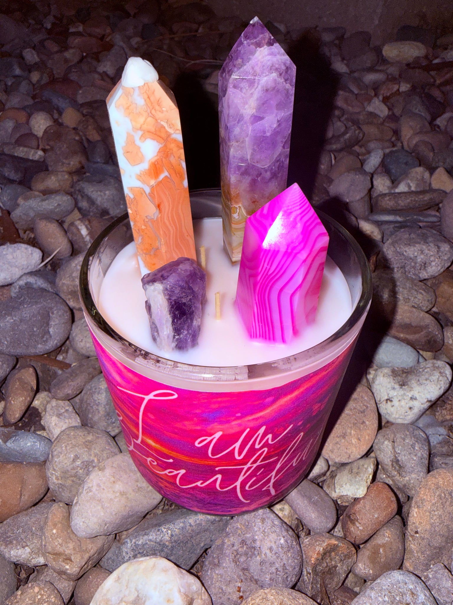 I am Beautiful Crystal Candle Reiki Blessed by Queen