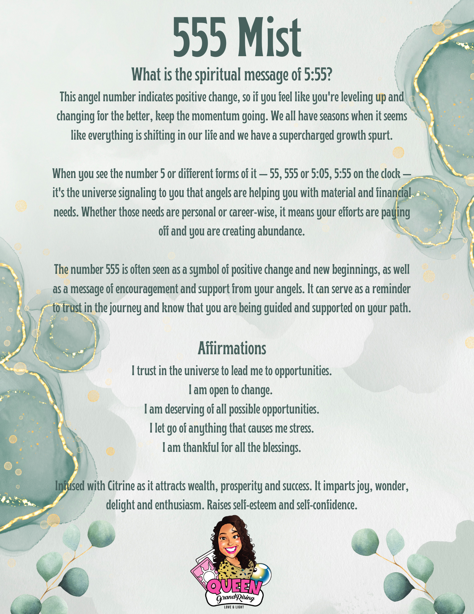555 Mist infused with Citrine Crystals, Therapeutic Essential Oils & Moon Water - Pick Your Size