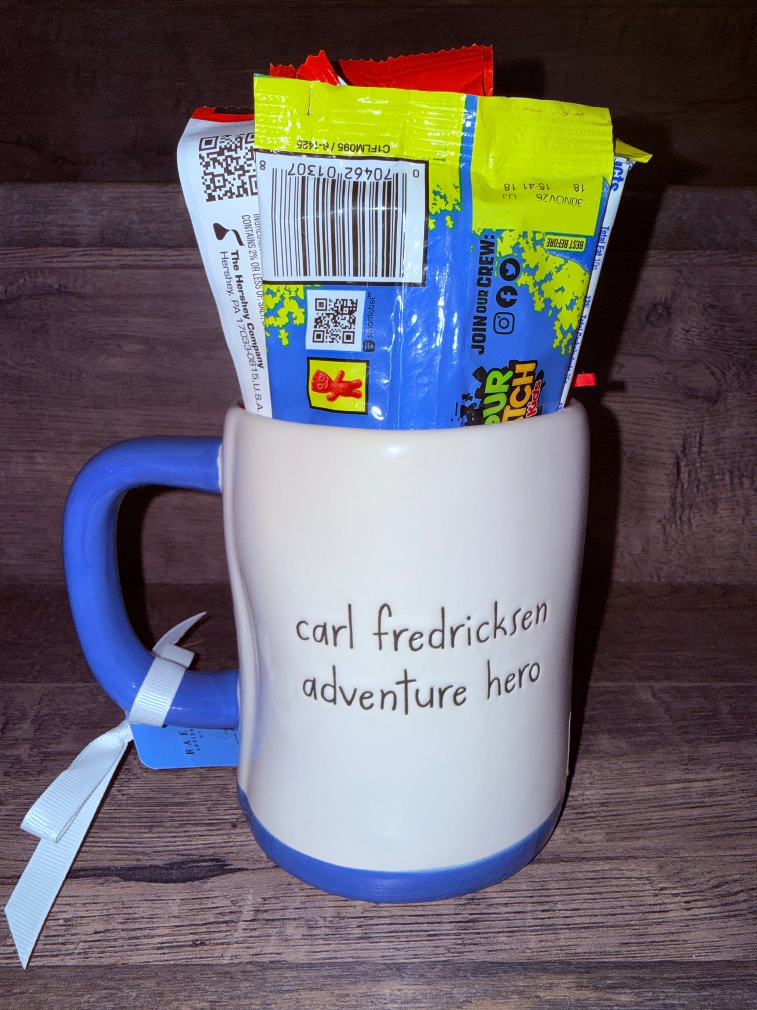 Pixar Up Movie "Carl Fredricksen Adventure Hero" Rae Dunn Double Sided Mug & Candy