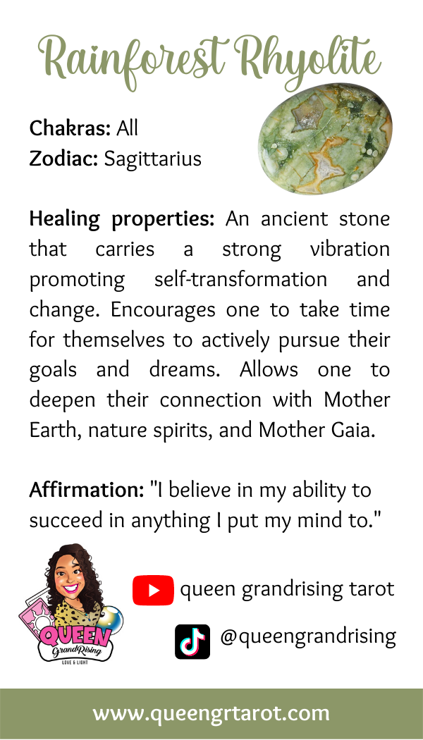 Rainforest Jasper is a stone of deep healing and connection to nature. It inspires growth, balance, and emotional release, helping you reconnect with your inner wild and the rhythms of the Earth. Known for its regenerative energy, it supports transformation, harmony, and joy in the present moment. ๐๐