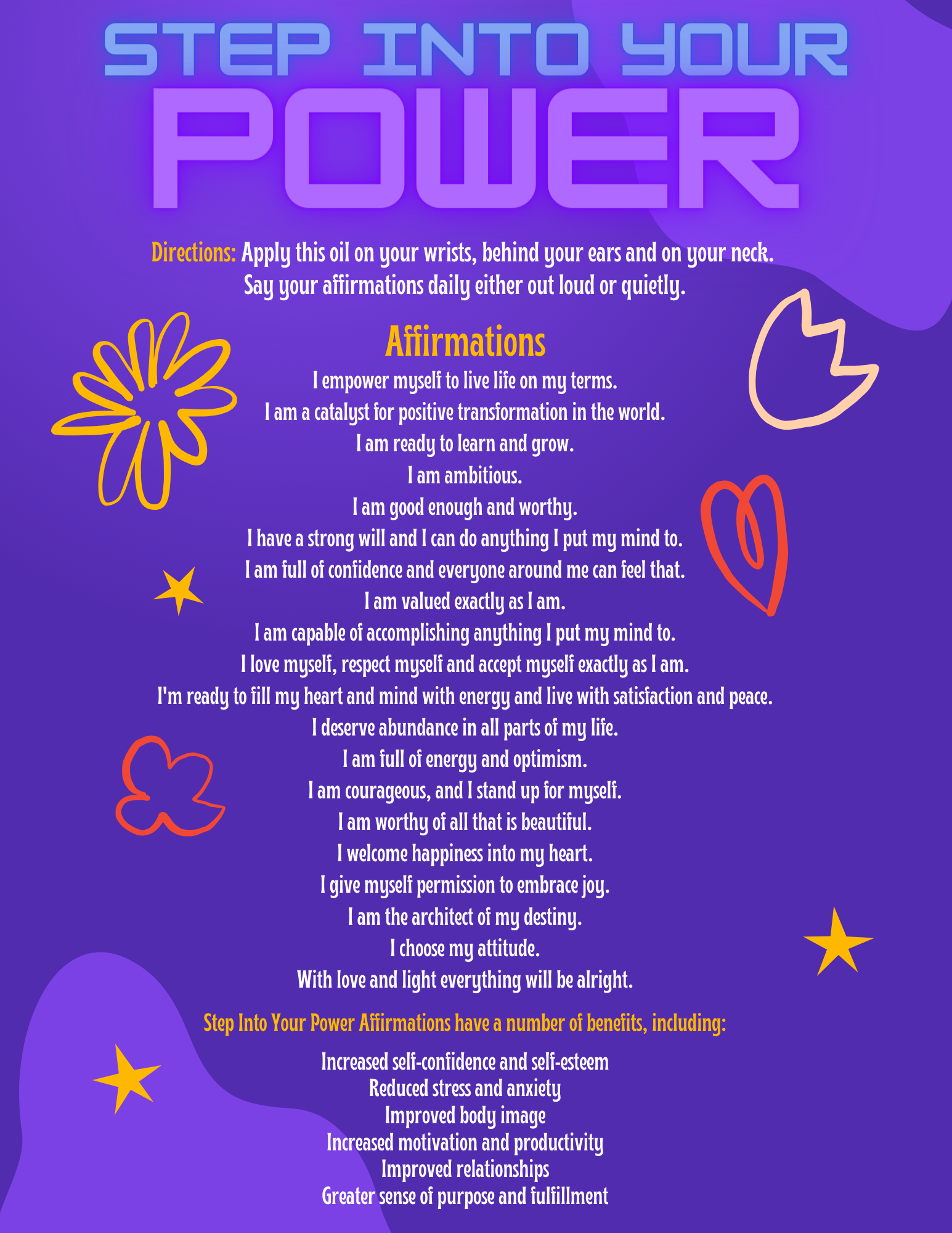 A sacred anointing blend created to ignite personal power, will, and divine confidence. Use before important conversations, or moments of doubt. Apply to the pulse points, solar plexus, or heart.