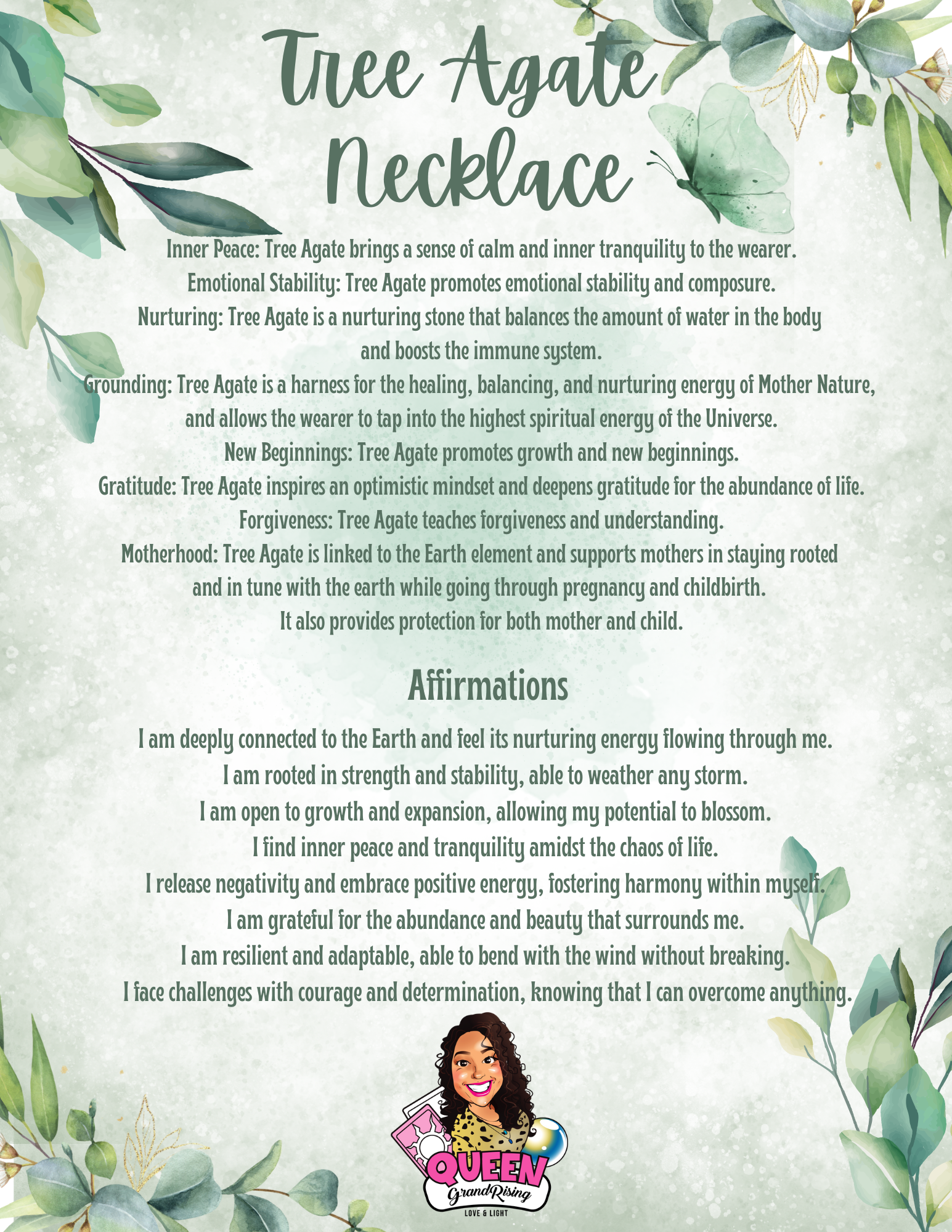Connect deeply with nature and your inner strength with the Tree Agate Crystal Necklace, featuring the earthy, stabilizing energy of Tree Agate. This natural beauty is handcrafted with sacred intention, infused with Reiki healing, and blessed with Queen energy to help you stay grounded, supported, and empowered as you grow. πΏπ³π